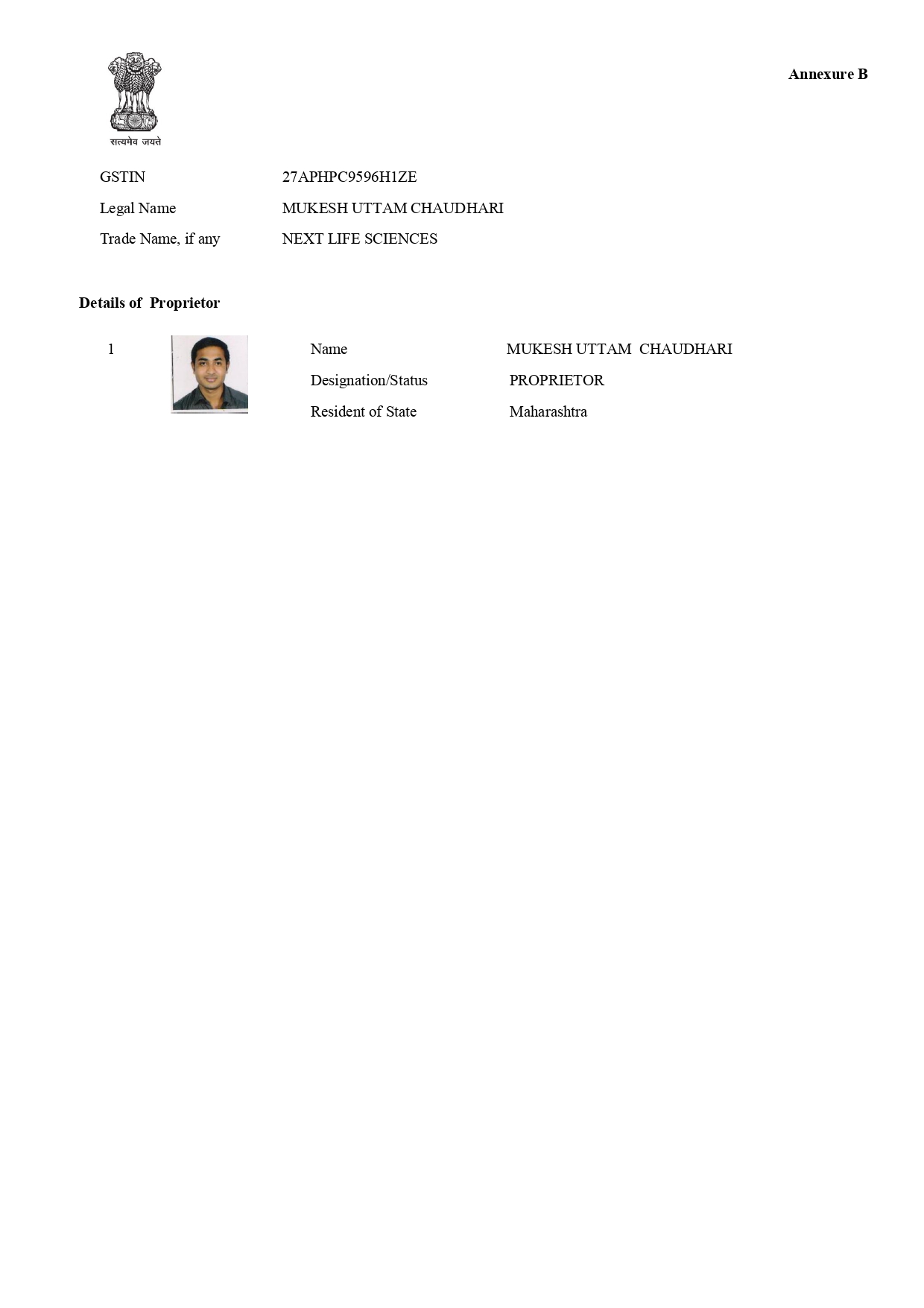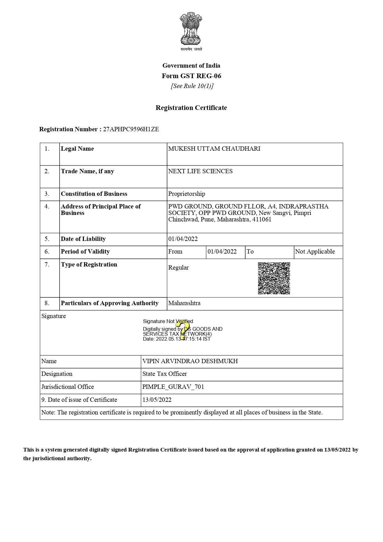 GSTIN : 27APHPC9596H1ZE
